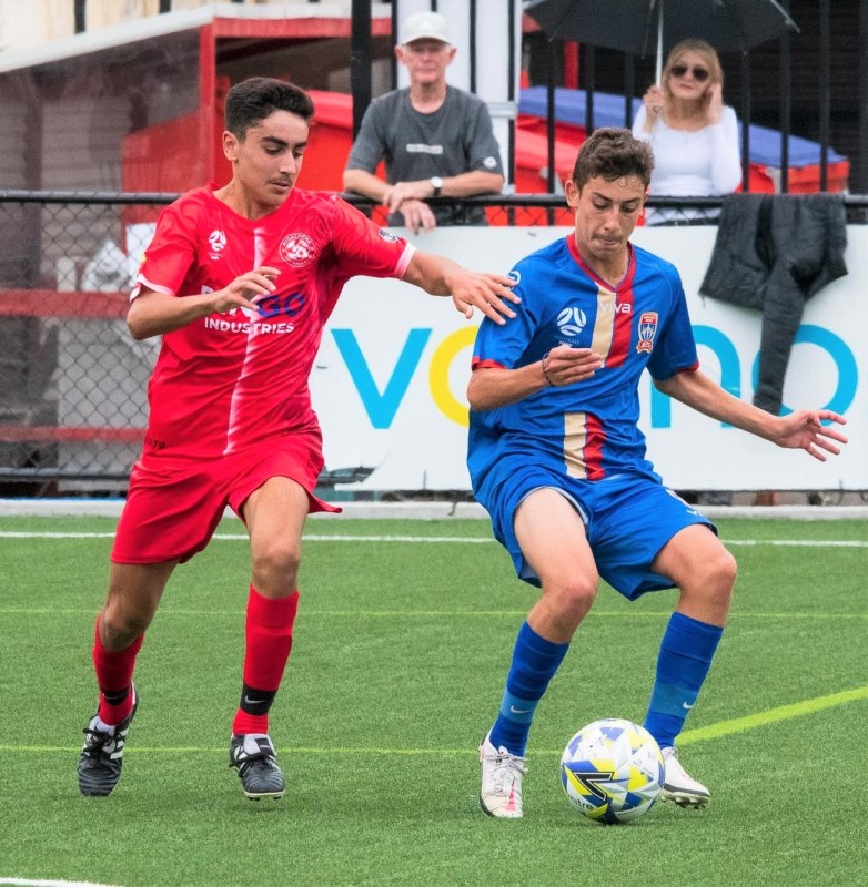 George Tsamouras contesting the ball from a Rydalmere player